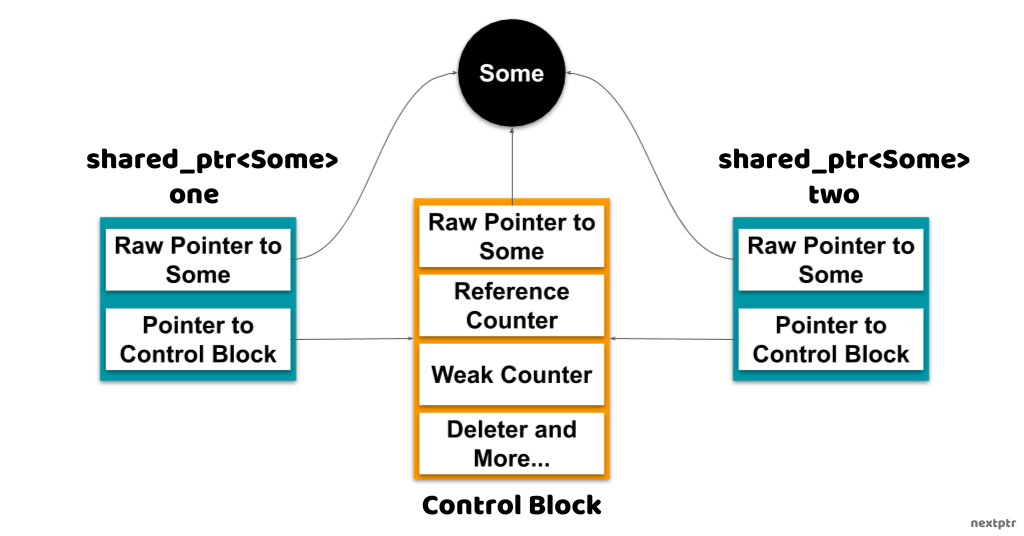 std::shared_ptr uses a separate control block to track how many owners an object has. Every time a shared_ptr is copied, the control block increments a strong reference count. Every time a shared_ptr is destroyed or reset, that count is decremented. When the strong count reaches zero, the managed object is automatically deleted.